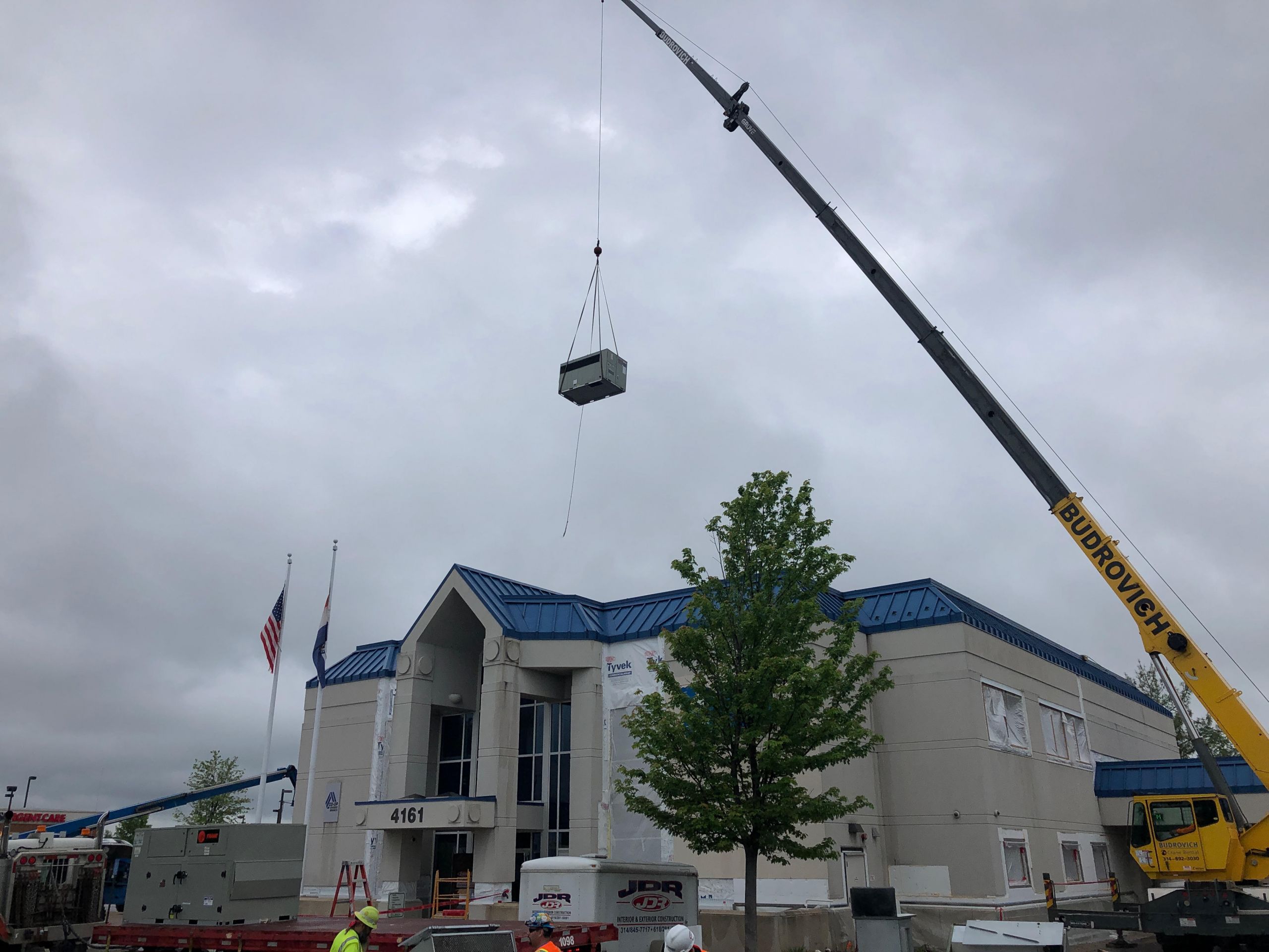 Progress being made at the West Community Credit Union project in O’fallon MO. Led by General Contractor L. Keeley, the team set two Trane dedicated outside air units and two Trane VRF condensing units.